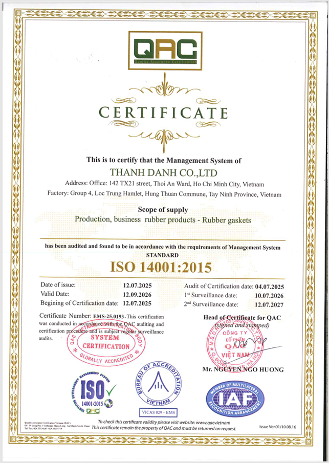 Chứng nhận ISO9001:2015 và ISO14000:2015